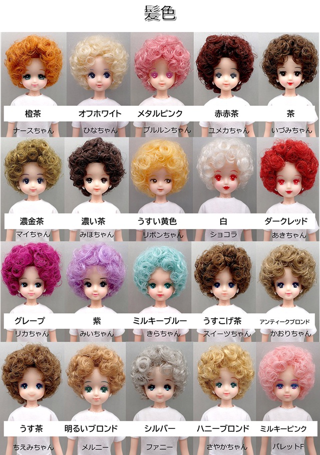 橙茶・オフホワイト・メタルピンク・赤赤茶・茶・濃金茶・濃い茶・うすい黄色・白・ダークレッド・グレープ・紫・ミルキーブルー・うすこげ茶・アンティークブロンド・うす茶・明るいブロンド・シルバー・ハニーブロンド・ミルキーピンク